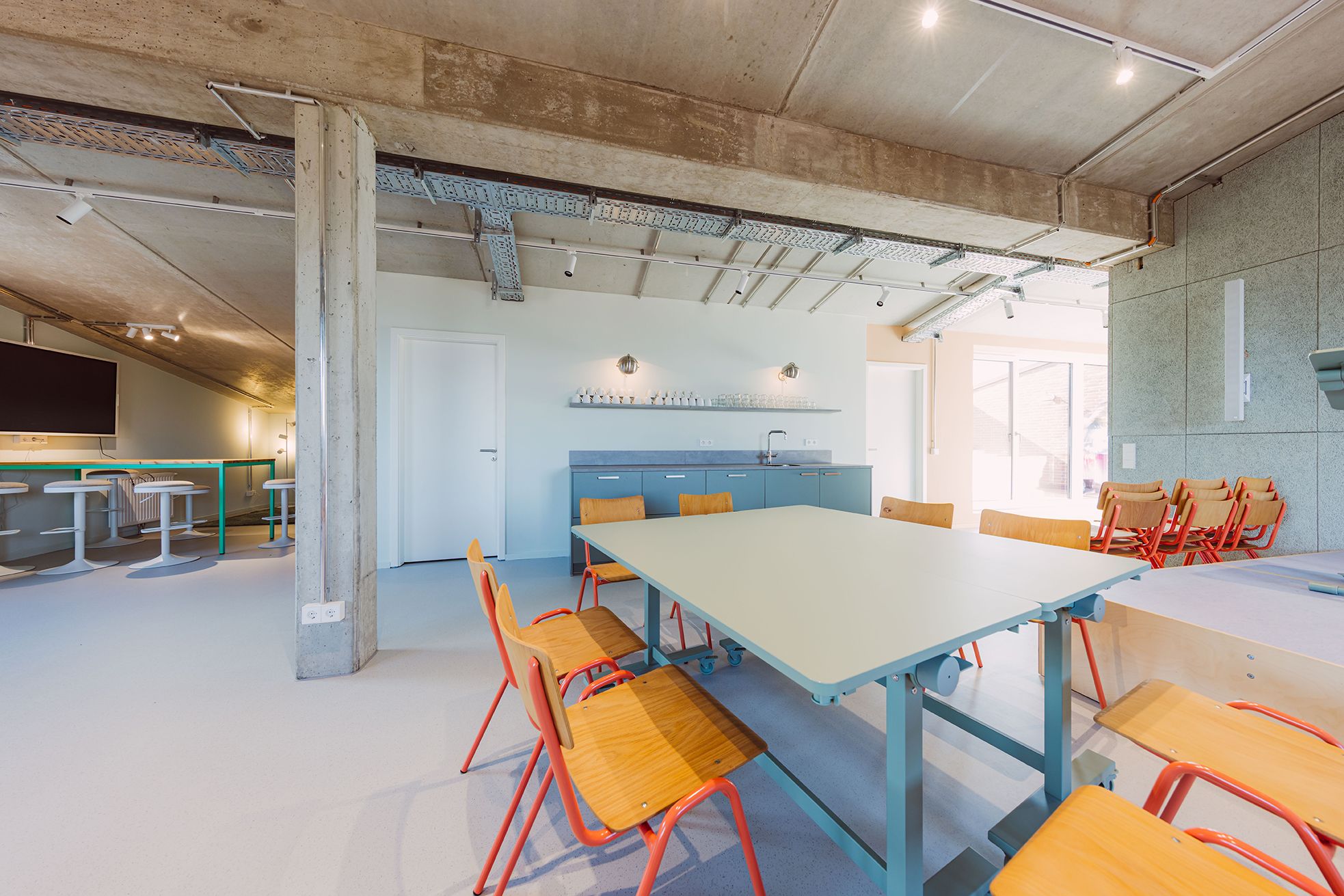 Zwei Perspektiven, ein Raum: Der Werkraum vereint zwei miteinander verbundene Bereiche – einen für Impulse und Inspiration, einen für Austausch und gemeinsames Arbeiten. So entsteht ein flexibles Umfeld für Workshops, Vorträge und Formate, die Dialog und Konzentration verbinden.